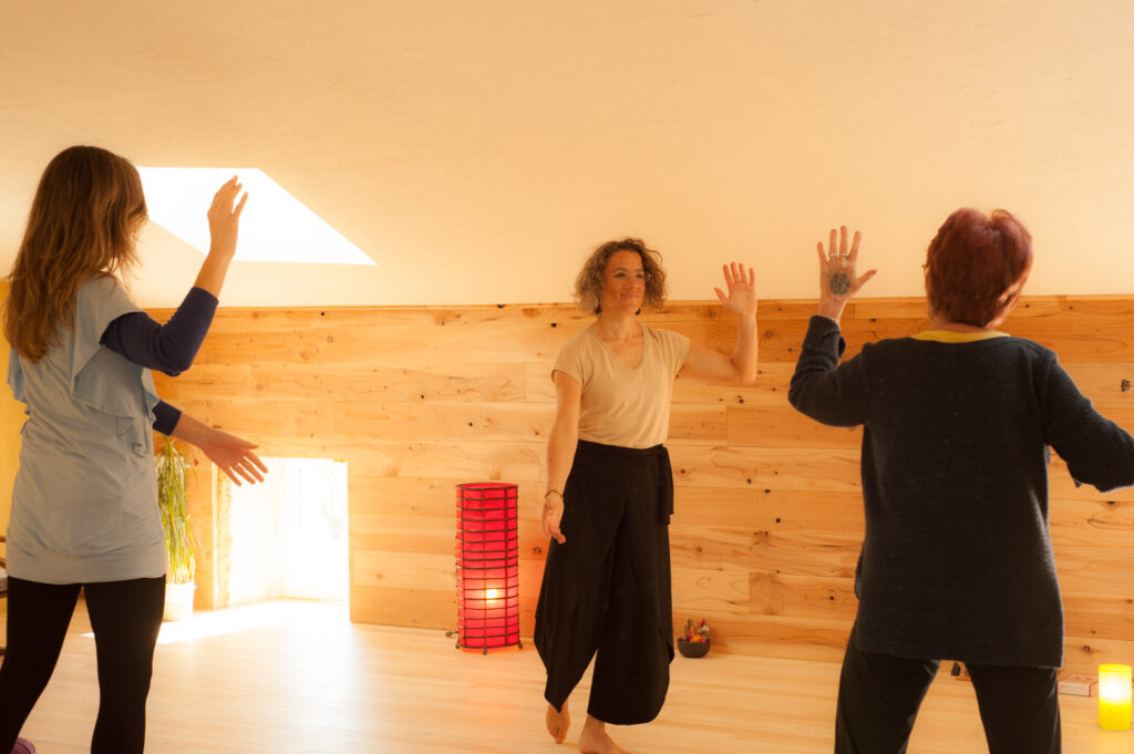L’intention première de mes ateliers c’est : revenir au corps. En toute simplicité. C’est faire de notre corps notre premier lieu de détente, de ressourcement. C’est cette expérience particulière d’écoute intérieure du corps qui nous permet d’en avoir une connaissance instinctive et ainsi de lier le corps et l’esprit.